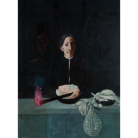Kiejstut Bereźnicki | "Postać w kuchni z pochodnią"Olej/płótno, 122 x 91 cm, sygnowany na krośnie: 'KBereźnicki' Kiejstut Bereźnicki, ur. 1935 w Poznaniu. Malarz, rysownik, profesor Akademii Sztuk Pięknych w Gdańsku. Studiował w Państwowej Wyższej Szkole Sztuk Plastycznych w Gdańsku, gdzie w 1958 r. obronił dyplom malarski w pracowni prof. Stanisława…